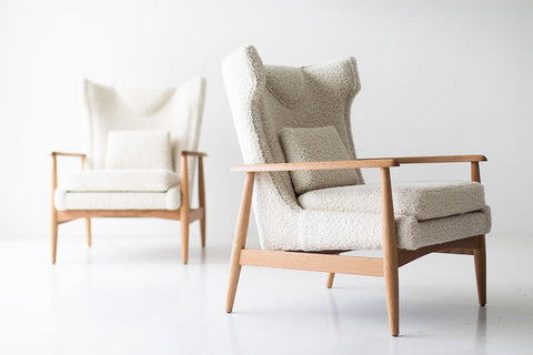 This piece ships free in the continental United States! Price includes FREE white glove shipping. *There may be an additional charge on pieces shipped to the West Coast* Contact us for designer/trade pricing. Peabody Modern Wing Chair in Boucle - 2012P This Lawrence Peabody wing chair is expertly handcrafted and upholstered. These Peabody chairs are...