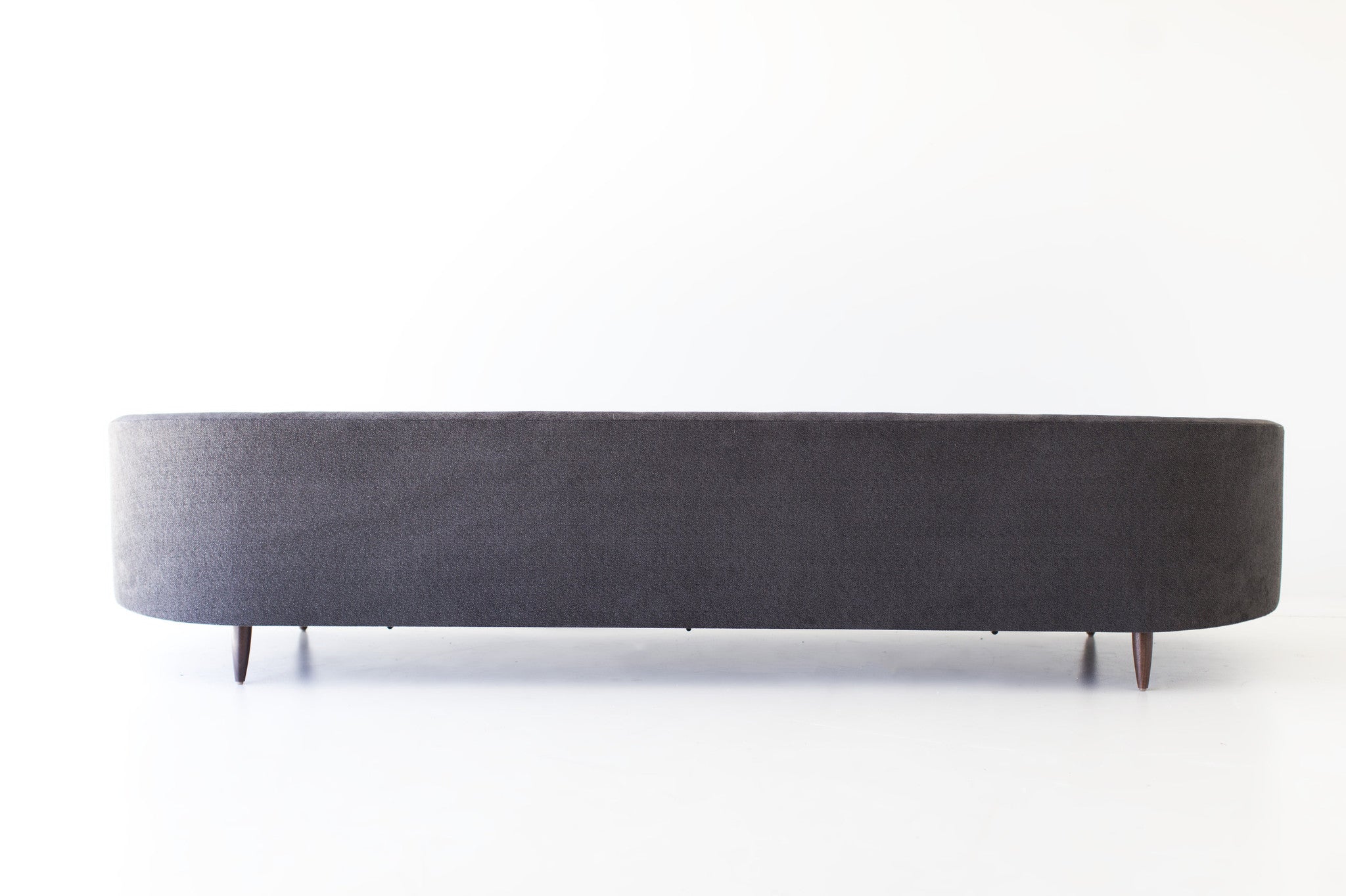 This modern sofa is expertly crafted and upholstered. The sofa boasts hand cut foam and high grade mohair. The sofa's frame and base are constructed by hand from a combination of bent plywood and solid hard wood; not from a machine. The walnut legs are then shaped by artisans and finished with a hand applied oil.