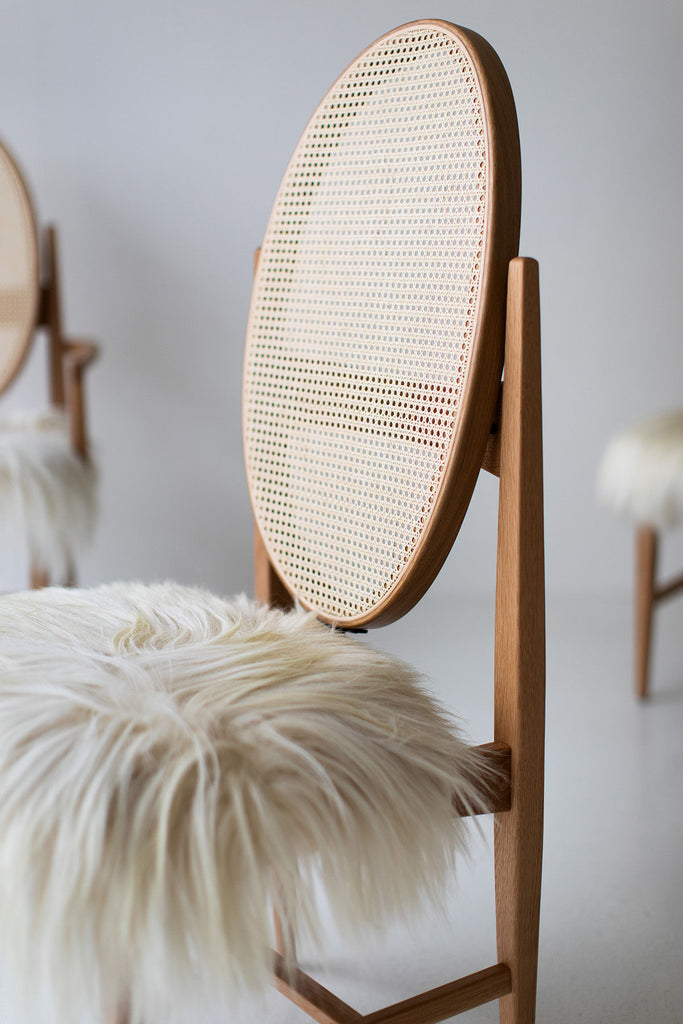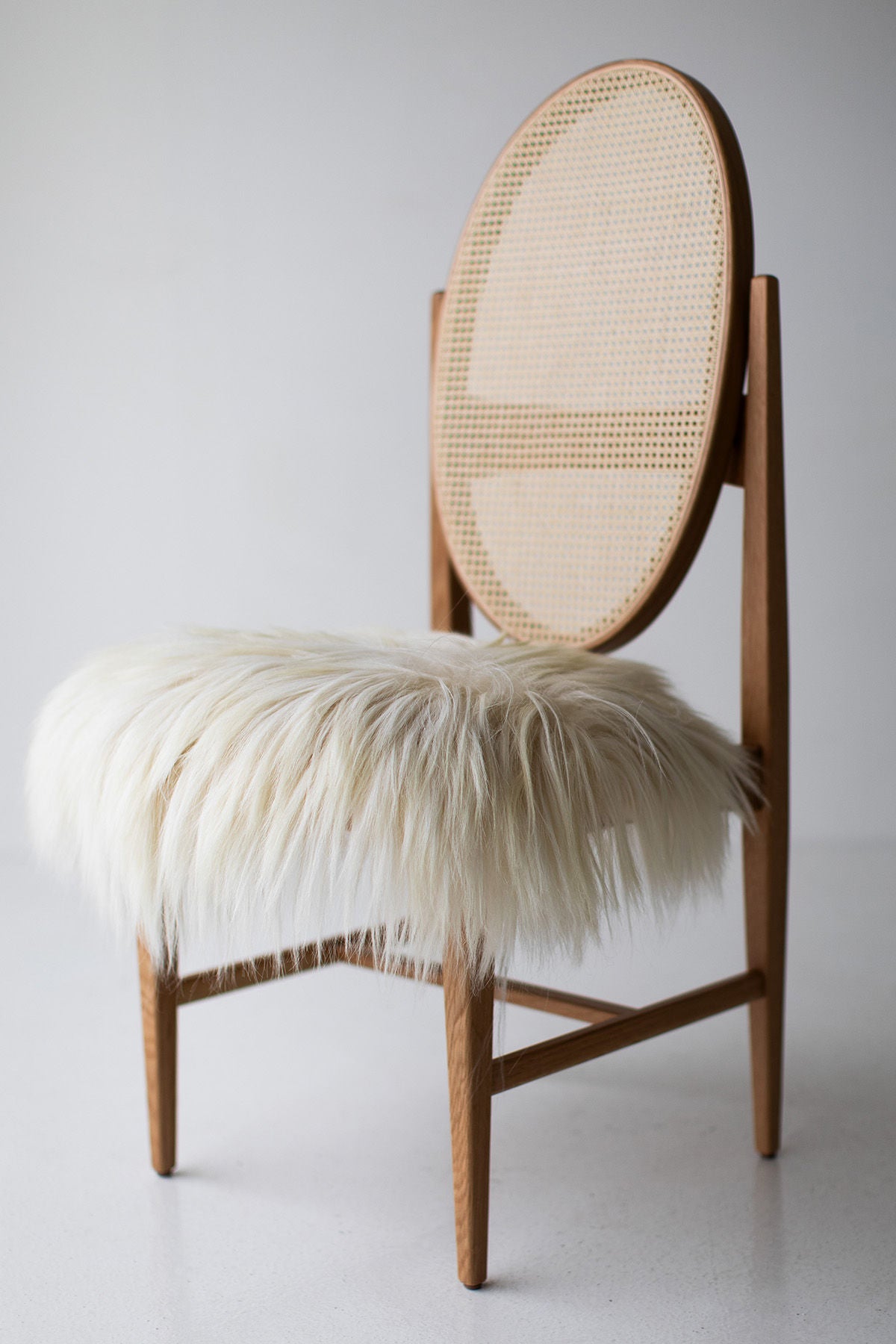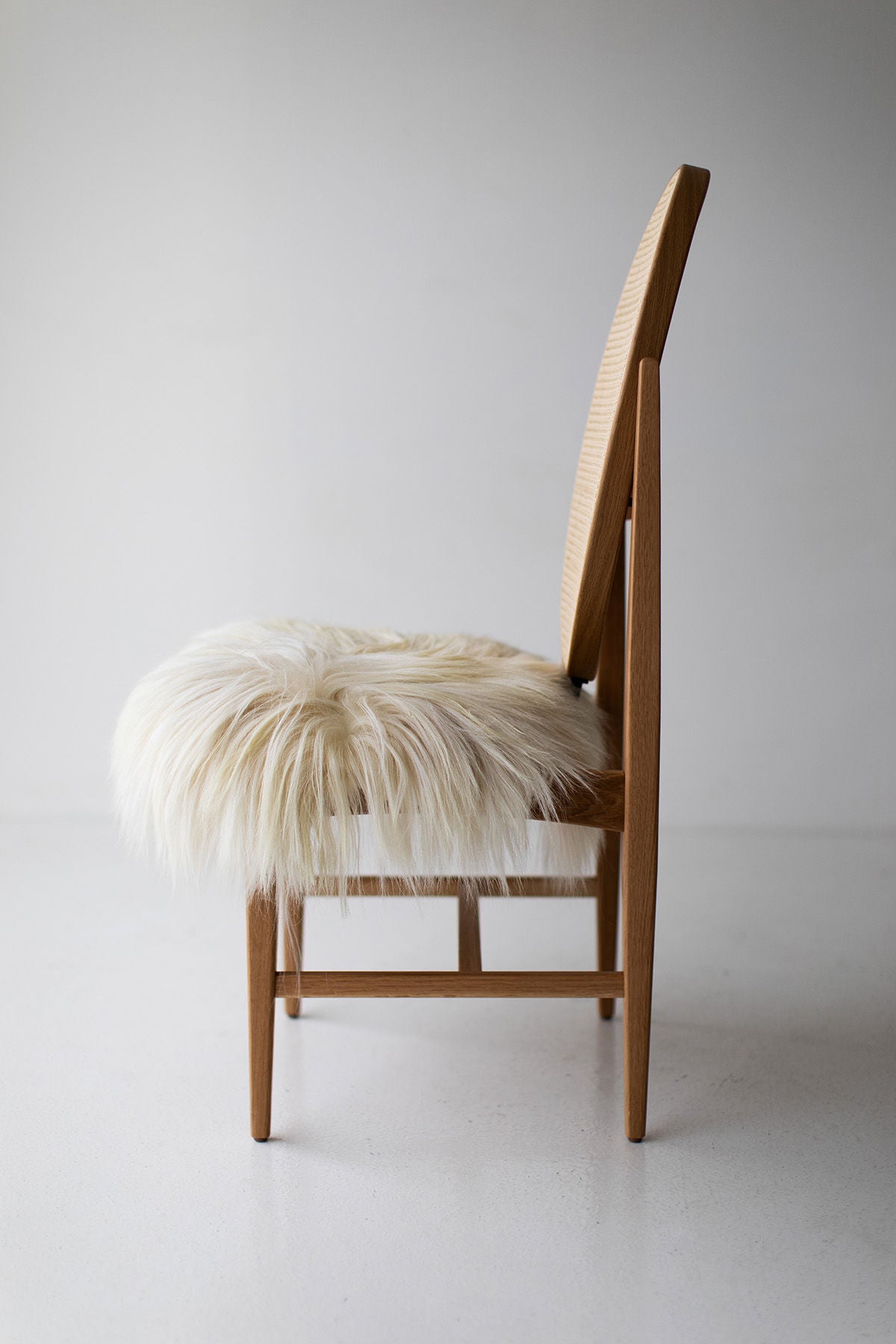 The Milo Baughman Oval Cane Back White Oak Side Chair for Craft Associates® Furniture is expertly crafted. These are a licensed reintroduction from Craft Associates. The chairs are shown here in solid white oak and sheepskin, but each is hand built and made to order so wood species and fabric can be customized. Craft Associates has a full fabric program available.