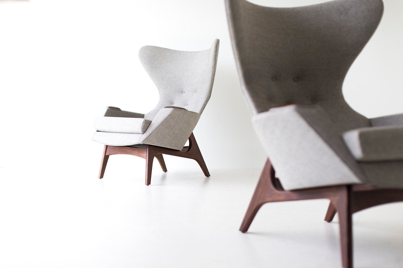Wooly Modern Arm Chair in Wool - 1407 is expertly crafted and upholstered. These wing chairs represents the largest lounge chair of our collection. Each chair boasts hand cut foam and commercial grade fabric. The chair's frame and base are constructed by hand from hard wood and not machine. The walnut base is then shaped by artisans and finished with a hand applied oil.